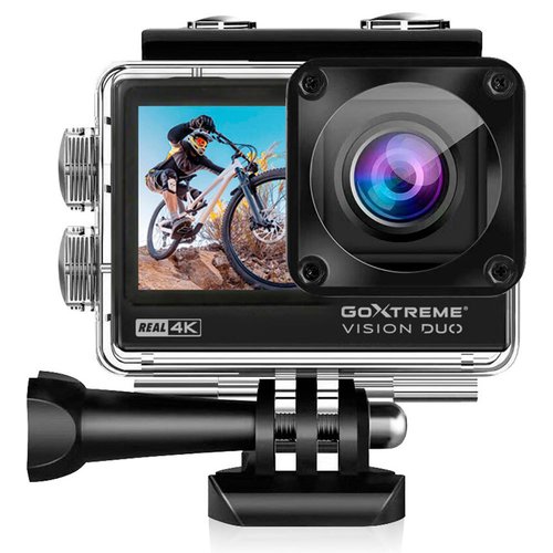 Schwarz Die EASYPIX GoXtreme Vision Duo 4K-Actionkamera ist eine Foto-Videokamera der Spitzenklasse für abenteuerlustige Personen, die ihre Erlebnisse in atemberaubenden Details festhalten möchten. Mit ihrer 4K-Auflösung bietet diese Kamera gestochen scharfe und klare Bilder, die die Essenz Ihrer Abenteuer wirklich einfangen. Die schwarze Farbe verleiht dem Design einen eleganten und modernen Touch. Diese Kamera ist perfekt für alle, die gerne schnorcheln, Fallschirmspringen oder andere aufregende Aktivitäten genießen. Es ist einfach zu bedienen und verfügt über eine Vielzahl vielseitiger Funktionen, darunter ein wasserdichtes Gehäuse, das bis zu einer Tiefe von 30 Metern verwendet werden kann, eine Fernbedienung zum drahtlosen Aufnehmen von Fotos und eine starke Saugnapfhalterung zur einfachen Befestigung an jeder Oberfläche. Die EASYPIX GoXtreme Vision Duo 4K-Actionkamera ist das ideale Werkzeug für alle, die eine zuverlässige und hochwertige Kamera benötigen, um all ihre aufregenden Momente festzuhalten.