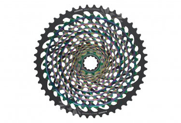 die x dome eagle kassette hat kein aquivalent die debatte uber die nutzlichkeit eines umwerfers fur mountainbikes wurde ein fur alle mal geschlossen jetzt hat der entwicklungsbereich von 10 bis 50 zahnen den weg fur eine neue eagle antriebsstrangumgebung geebnet diese kassette wurde fur die verwendung mit unserem bewahrten und zuverlassigen xd kassettengehause entwickelt und bietet eine perfekte entwicklungsreichweite von 500 unabhangige tests haben gezeigt dass wir dank der x dome struktur die starkste kassette auf dem markt haben neue schalteigenschaften verbessern das schalten sowie die kettenretention diese kassette passt in leistung und farbe perfekt zu den kompatiblen komponenten der xx1 eagle axs reihe einzelheiten die neue und abwechslungsreiche farbe passt perfekt zum xx1 eagle axs die sram kassettenherstellungstechnologie gewahrleistet die bestmogliche festigkeit und das geringste gewicht die brandneuen schaltfunktionen sorgen fur ein flussigeres leiseres system mit besserem ein und ausschalten kompatibilitat mit dem xd kassettengehause 10 bis 50 zahne 10 12 14 16 18 21 24 28 32 36 42 50 behandlung regenbogen referenz 00 2418 098 000