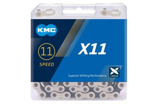 Die KMC X11 Kette ist eine hochwertige Fahrradkette, die speziell für 11-fach Kettenschaltungen von Shimano, Campagnolo und SRAM entwickelt wurde. Mit einer Länge von 118 Gliedern und einer Größe von 1/2" x 11/128" passt sie perfekt auf die meisten Fahrräder. Die Kette ist halb vernickelt und hat eine Stiftlänge von 5 mm. Mit einem Gewicht von 258 g ist sie leicht und dennoch robust genug, um den Belastungen beim Radfahren standzuhalten. Die Kette ist auch nichtrichtungsgebunden, was bedeutet, dass sie in beide Richtungen verwendet werden kann. Eine besondere Eigenschaft der KMC X11 Kette ist die Doppel-X-Brücke, die ein perfektes Schalten ermöglicht. Die Kette enthält auch einen Kettenverschluss, der das Entfernen und Reinigen der Kette erleichtert. Insgesamt ist die KMC X11 Kette eine ausgezeichnete Wahl für jeden Radfahrer, der eine zuverlässige und langlebige Fahrradkette sucht, die perfekt auf 11-fach Kettenschaltungen abgestimmt ist.