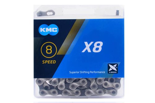 Die KMC X8 Kette ist eine hochwertige Fahrradkette für 8-fach Kettenschaltungen. Mit einer Länge von 114 Gliedern und einer Größe von 1/2" x 3/32" passt sie perfekt zu Shimano, Campagnolo und SRAM Schaltungen. Die Kette ist halb vernickelt und hat eine Stiftlänge von 7 mm. Dank der Doppel-X-Brücke bietet die KMC X8 Kette ein perfektes Schalten und eine hohe Haltbarkeit. Die Kette ist in Silber-Schwarz gehalten und hat eine Nichtrichtungs-Funktion. Mit einem Gewicht von 330 g ist sie leicht und dennoch robust genug für den Einsatz auf der Straße oder im Gelände. Die KMC X8 Kette wird mit einem Kettenverschluss geliefert, der eine einfache Montage und Demontage ermöglicht. Mit dieser Fahrradkette bist du bestens ausgerüstet für deine nächste Fahrradtour oder dein Training auf dem Rennrad.