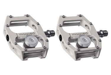 magped pedale sind eine echte innovation fur jeden einsatzbereich diese ultra2 version ermoglicht eine ausgezeichnete stabilitat mit einer angepassten plattform mit noppen der patentierte magnetmechanismus ermoglicht es den fus schnell und einfach vom pedal zu losen im vergleich zu standard automatikpedalen wird das unfall und verletzungsrisiko auf ein minimum reduziert und ihr geist bleibt frei fur ein unbeschwertes fahrraderlebnis die produkt das magped pedal ist ein modernes hochwertiges flatpedal das aus leichtem cnc geschnittenem aluminium mit titaniumspindel hergestellt wird alle magped pedale sind im vergleich zu anderen high end pedalen trotz des hinzugefugten magnetsystems auserst wettbewerbsfahig das magped pedal sorgt fur eine kontinuierliche kreisbewegung indem es ihre streckmuskeln 70 sowie ihre beugemuskeln 30 fur eine maximale fahrleistung nutzt sie werden den unterschied vor allem bei langen fahrten spuren das pedal berucksichtigt mehrere grad der verdrehung ihres fuses und reduziert so die belastung ihrer knochel bei ausfahrten auserdem kann die position des fuses ohne verlust der zugkraft nach vorne oder hinten verandert werden um eine ideale position auf ihrer berg und talfahrt zu erreichen das pedal ist mit 3 hochwertigen gedichteten industrielagern ausgestattet die achsen konnen bei bedarf ausgetauscht werden der hochleistungs neodym magnet ist mithilfe einer integrierten polymer dampfungseinheit einstellbar details einsatzbereiche enduro all mountain dh neodym magnet 200n fur einen radfahrer gt 75 kg achsabdeckung in den farben schwarz orange grun und pink cnc fertigung aus einem einzigen magnesiumblock achse aus titanium abmessungen lange 109 mm breite 85 mm hohe 17 mm hochleistungsfahiger neodym magnet gewicht pro paar mit pins ultra2 200 338 g geliefert mit magnete metallplatten fur spd schuhe magnetschrauben in 2 langen inbusschlussel positionierungsplatte markenempfehlung 150n fur einen radfahrer gt 80 kg 200n fur einen radfahrer gt 75 kg die marke empfiehlt spd schuhe mit einer dunnen bis mittleren sohle