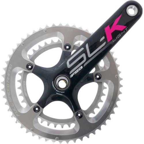 This MTB chainset features lightweight carbon crankarms that use a hollow arm design to offer maximum strength and durability, without any unnecessary weight. FSA has also equipped this model with two precision CNC-machined aluminium chainrings, so off-road riders can benefit from tough and dependable performance on the most rigorous of trail conditions. Thanks to each chainrings CNC-machining process, any excess material has been removed for a superior strength to weight ratio. Coming complete with a five-bolt design, this is a great choice of upgrade for stiffer, lighter and more reliable MTB performance. Manufacturer's Part Numbers: 330-3711NSGD Black/Green 50/34T 170mm 330-3710NSPD Black/Grey Black/Pink 50/34T 165mm 330-3711NSPD Black/Grey Black/Pink 50/34T 170mm 330-3711NSWD Black/White 50/34T 170mm 330-3713NS Black/Red 50/34T 175mm 330-3713NSWD Black/White 50/34T 175mm 330-3700NSGD Black/Green 53/39T 170mm 330-3712NS Black/Red 50/34T 172.5mm