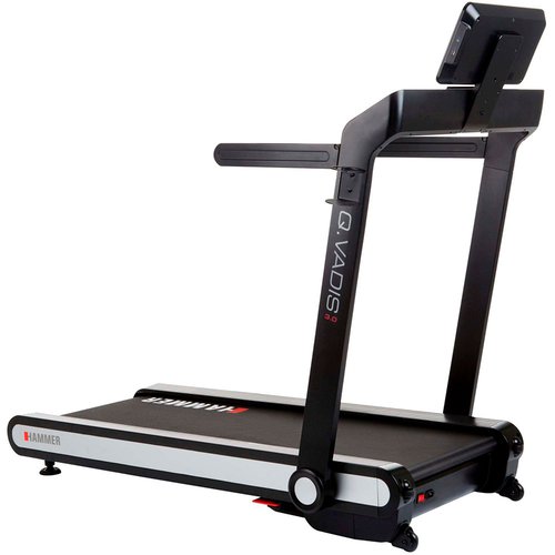 Wir stellen vor: das FINNLO Q. Vadis 3.0 Laufband, das ultimative Trainingsgerät für Ihr Home-Fitnessstudio. Dieses erstklassige Laufband wurde entwickelt, um ein anspruchsvolles und effektives Training für Benutzer aller Fitnesslevel zu bieten. Mit seinem schlanken und modernen Design wird das Q. Vadis 3.0 nicht nur das Aussehen Ihres Home-Fitnessstudios aufwerten, sondern Ihnen auch helfen, Ihre Fitnessziele zu erreichen.Ausgestattet mit einem leistungsstarken 3.5-PS-Motor erreicht das Q. Vadis 3.0 Geschwindigkeiten von bis zu 19 km/h, sodass Sie an Ihre Grenzen gehen können. Die große Lauffläche von 51x140 cm bietet ausreichend Platz für bequemes und sicheres Laufen, während die 15 Steigungsstufen eine Vielzahl von Trainingsmöglichkeiten bieten, um verschiedene Muskelgruppen anzusprechen.Ausgestattet mit einem benutzerfreundlichen LCD-Display ermöglicht Ihnen das Q. Vadis 3.0, Ihren Fortschritt einfach zu verfolgen und Ihre Herzfrequenz mit den integrierten Herzfrequenzsensoren zu überwachen. Das Laufband bietet außerdem 12 voreingestellte Programme, um Ihre Trainingseinheiten interessant und herausfordernd zu gestalten.Einer der Hauptvorteile des Q. Vadis 3.0 ist sein fortschrittliches Stoßdämpfungssystem, das die Belastung Ihrer Gelenke und Muskeln reduziert und es zu einer sicheren und komfortablen Option für Läufer jeden Alters macht. Das Laufband verfügt außerdem über ein faltbares Design für einfache Aufbewahrung, wodurch es perfekt für Personen mit begrenztem Platzangebot geeignet ist.Mit seiner robusten Konstruktion und den hochwertigen Materialien ist das Q. Vadis 3.0 auf Langlebigkeit ausgelegt und hält einem maximalen Benutzergewicht von 136 kg stand. Es wird außerdem mit einer lebenslangen Garantie auf Rahmen und Motor geliefert, die Ihre Investition schützt.Zusammenfassend lässt sich sagen, dass das FINNLO Q. Vadis 3.0 Laufband ein erstklassiges Trainingsgerät ist, das ein anspruchsvolles und effektives Training für Benutzer aller Fitnesslevel bietet. Mit seinem leistungsstarken Motor, der großen Lauffläche, dem fortschrittlichen Stoßdämpfungssystem und den benutzerfreundlichen Funktionen ist dieses Laufband ein Muss für jedes Home-Fitnessstudio. Verbessern Sie Ihre Fitnessroutine mit dem Q. Vadis 3.0 und sehen Sie noch heute erste Ergebnisse.