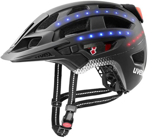 Automatisch sichtbar. Sicherheit durch Sichtbarkeit: Der Uvex Finale light 2.0 sorgt für Aufmerksamkeit im Straßenverkehr. Sobald die Umgebungshelligkeit abnimmt, schaltet ein Lichtsensor die im Helm integrierten LED Spots automatisch an. Wie können Radfahrer*innen im dichten Straßenverkehr noch besser geschützt und Unfälle verhindert werden, bevor sie passieren? Klar ist: Wer im Großstadtdschungel auffällt und von anderen Verkehrsteilnehmern rechtzeitig gesehen wird, ist deutlich sicherer unterwegs. Mit dem Uvex Finale light 2.0 wird das Konzept eines beleuchteten Helms um eine smarte Lichtautomatik erweitert. Ein Sensor erkennt automatisch das Umgebungslicht und schaltet die Helmbeleuchtung mit 40 integrierten LEDs bei Bedarf selbstständig ein. Der per Mini-USB Anschluss aufladbare Akku hat eine Laufzeit von bis zu 12 Stunden. Das tiefgezogene Heck verspricht noch mehr Schutz und Tragekomfort. Perfekt für Nachtschwärmer, Vielfahrer und Großstadtpendler. Features Monomatic: Der standardisierte Komfortverschluss uvex monomatic lässt sich mit einer Hand öffnen und schließen. FAS: Das Fast-Adapting-System-Gurtband lässt sich leicht und stufenlos exakt an die eigene Kopfform anpassen. So bleibt der Helm in allen Situationen fest auf dem Kopf und das Gurtband immer in der optimalen Position. Anatomic IAS-System: Verstellung in der Länge, Weite und Höhe Eine zweite Schale schützt zusätzlich den unteren Helmbereich Technische Details Konstruktion: Double-In-Mold Technologie Antiallergische, wechselbare Innenausstattung Größenverstellung: IAS-Drehrad Prüfnorm: EN 1078 Belüftungsöffnungen: 19 Insektenschutz Vent Polster Mit 40 integrieten LEDs ( aufladbar per Mini-USB Anschluss ) Rücklicht Die benötigte Batterie LIR2477 ist im Lieferumfang enthalten Finale Light 2.0, Uvex