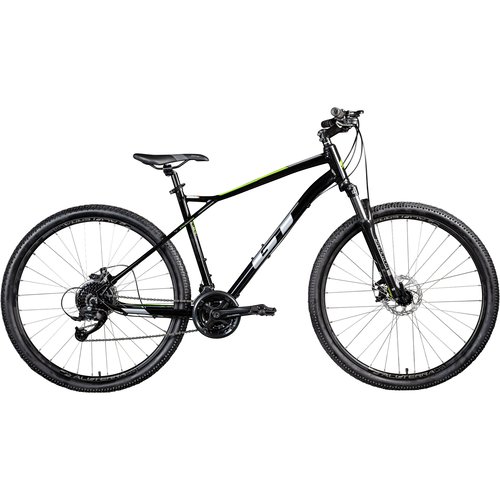 Das GT Aggressor Sport 650B Hardtail Mountainbike ist dein zuverlässiger Begleiter im Alltag, auf Wochenendtouren und im Gelände. Der Aluminiumrahmen mit GT Triple Triangle Design und flexenden Sitzstreben ist mit einer SR SuntourM3030 Federgabel 75 mm Federweg ausgestattet und sorgt für ein hervorragendes Fahrgefühl Mit einer 21 Gang Schaltung bringt dich das Aggressor Sport zuverlässig über jeden Hügel. Verbaut wurden solide Komponenten von Prowheel, Microshift und Sunrace, die lange zuverlässig und wartungsarm für geschmeidige Schaltvorgänge sorgen. Fürs Verzögern sind mechanische Scheibenbremsen von Tektro zuständig. Für den passenden Bodenkontakt sorgen die WTB Ranger Comp Reifen 27,5“ x 2,25“ mit ihrem griffigen DNA-Compound, die sich für den Offroad-Einsatz wie für asphaltierte Straßen gleichermaßen eignen. Wir empfehlen das GT Aggressor Sport für Fahrer zwischen 155 cm und 175 cm Körpergröße. Alle Fahrräder werden zu mindestens 85 % vormontiert ausgeliefert. Es müssen Vorderrad, Pedale, Sattel und Lenker montiert werden. Achtung: Wir weisen darauf hin, dass dieses Fahrrad nicht mit Beleuchtung ausgestattet und damit nicht StVZO-konform ist. Es wird empfohlen, eine entsprechende Nachrüstung vorzunehmen. Technische Daten: Hersteller: GT Modell: Aggressor Sport Farbe: schwarz Gänge: 21 Rahmengröße: 38 cm, 42 cm Laufradgröße: 27,5 Zoll / 650B Rahmen: GT Triple Triangle Aluminium Diamantrahmen mit flexenden Sitzstreben Gabel: SR Suntour M3030 Federgabel mit 75 mm Federweg Steuersatz: halbintegriert, abgedichtet, cartridge Lenker: GT All Terra Aluminium Riser Bar, Breite: 720 mm, Rise: 25 mm, Sweep 8°, Rise: 6° Griffe: GT Statement Schalthebel: Microshift TS38 Schalthebel Bremshebel: Aluminium Zweifingertyp Schaltwerk: Microshift FD-M20M Umwerfer: Microshift RD-M26C Kurbelgarnitur: Prowheel Aluminium dreifach, 42-34-24 Zähne Kassette: Sunrace 7-fach, 14-34 Zähne Kette: KMC Z7 Innenlager: Vierkant cartridge Bremsen: Tektro 160/160 mm mechanische Scheibenbremsen Reifen: WTB Ranger Comp 27,5" x 2,25" aus DNA Compound Felgen: WTB SX19 Naben: Aluminium Speichen: 32 Stück, 14G, rostfreier Stahl Pedale: GT Slim Line Plattformpedale Sattel: GT MTB-Sattel Sattelstütze: GT All Terra Aluminium Patentsattelstütze empfohlene Körpergröße: RH 38: 155 - 170 cm RH 42: 160 - 175 cm zulässiges Gesamtgewicht: 120 kg Gewicht: 15 kg Lieferzustand: 85 % vormontiert Lieferumfang: 1 Fahrrad, Zubehör (Reflektoren, Glocke)