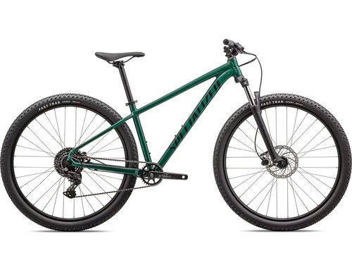 Specialized ROCKHOPPER SPORT VN PINE GREEN/OBSIDIAN 2025 Das Rockhopper Sport ist ein echter Dauerbrenner und kein Bankdrücker, denn es ist das perfekte Bike, wenn es darum geht, Performance-Punkte auf die Tafel zu bringen und gleichzeitig den Geldbeutel zu schonen. Mit den hydraulischen Tektro M275 Scheibenbremsen, der Shimano CUES-Schaltung und der SR SunTour XCM-Gabel ist das Rockhopper Sport in der Lage, an jedem beliebigen Sonntag - und auch den Rest der Woche - den Sieg zu erringen. Der konifizierte Aluminiumrahmen des Rockhopper besteht aus unserem leichten und dennoch robusten Premium A1-Aluminium und verfügt über hydrogeformte Ober- und Unterrohre, um das Gewicht niedrig und die Festigkeit hoch zu halten, während er gleichzeitig eine erhöhte Überstandshöhe, eine ausgeklügelte interne Kabelführung und die Kompatibilität mit Dropper-Stützen bietet. Um sicherzustellen, dass der Rockhopper sowohl die beste Passform als auch die beste Leistung für jede Person bietet, unabhängig von ihrer Größe, haben wir jede Rockhopper-RahmenGröße mit der optimalen LaufradGröße gepaart. Das Ergebnis ist ein Rockhopper, der zu jedem Fahrer passt, und die Gewissheit, dass jeder Rockhopper auf dem Laufrad mit dem besten Handling für seine RahmenGröße rollt. Mit unserem Rx Tune für den Rockhopper bringt die mit Lockout ausgestattete SR Suntour XCM mit maßgeschneiderter Multi-Circuit-Dämpfung eine Größenabhängige Federweg- und Federrate auf die Bühne, die sicher beeindruckt und gleichzeitig eine konsistente Geometrie, Handhabung und Federungsleistung unabhängig von der Rahmen- oder LaufradGröße gewährleistet. Die hydraulischen Scheibenbremsen von Tektro sind wunderbar bissig, liefern ihre Kraft aber mit einem raffinierten, intuitiven Gefühl und bilden so ein Paket, das weit über seine Gehaltsklasse hinausgeht. Mit einem robusten Shimano 1x-Antrieb mit großer Reichweite und einem Schaltwerk mit Kupplung, das Ihre Fahrt leise und Ihre Kette am Laufen hält, bleiben die Dinge einfach. Kombinieren Sie die absolut zuverlässigen Formula-Naben mit unseren Specialized-Felgen mit 25 mm Innendurchmesser und ohne Haken für einen starken, leichten und langlebigen Laufradsatz.