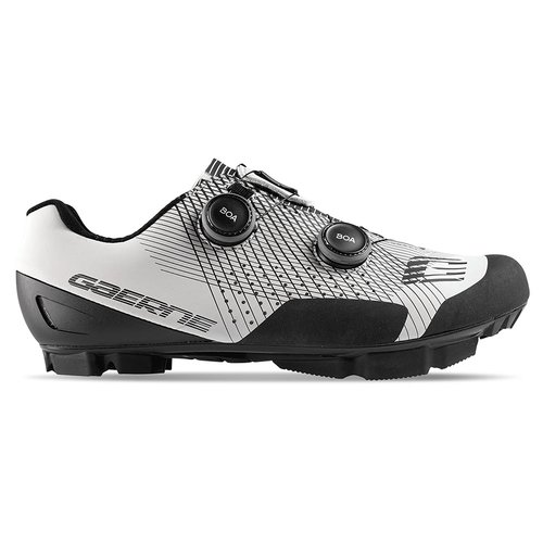 Wir präsentieren den CARBON G.DARE MTB- und Cyclocross-Schuh, ideal für die Eroberung von Trails und das Verlassen ausgetretener Pfade, gerüstet für Ihr nächstes Mountainbike-Abenteuer.Das Mikrofasermaterial ist strategisch perforiert, um die Atmungsaktivität zu priorisieren und die Luftzirkulation zu verbessern, sodass Ihre Füße während der gesamten Fahrt kühl und trocken bleiben. Im Inneren ist der Schuh mit Mesh kombiniert, um den Fuß dauerhaft zu stützen und die Stabilität zu verbessern. Die TPU-Overlays an Zehenkappe und Seiten bieten Schutz vor Abrieb und erhöhen die Strapazierfähigkeit.Das DUAL FITTING CLOSURE SYSTEM mit zwei unabhängigen BOA Dial Z-Drehverschlüssen ermöglicht eine individuelle Anpassung der Passform sowohl im Spann- als auch im Vorfußbereich und sorgt für einen präzisen, schnellen und personalisierten Verschluss ohne Druckstellen. Der L6 DIAL Z, bekannt für sein hochwertiges, aerodynamisches Design, verfügt über eine optimierte gummierte Oberfläche für einen effektiven und sicheren Halt.Der FIT TONGUE 1.0 ist nahtlos verarbeitet und mit einer Hightech-Polsterschicht für mehr Komfort und Atmungsaktivität ausgestattet. Die integrierte, rutschfeste Fersenkappe erhöht die Fußstabilität und -kontrolle für ein verbessertes Fahrerlebnis. EPS TRANSPIRANT INSOLE mit anatomischer Unterstützung für Komfort und Pedaliereffizienz.Die Gaerne EPS Lightweight Carbon Fiber MTB Sole 10.0, die in Zusammenarbeit mit Michelin® entwickelt wurde, verfügt über eine Carbonstruktur, die für hervorragende Steifigkeit und Leichtigkeit für kraftvolles Pedalieren sorgt. Das Michelin®-Gummiprofil garantiert maximale Abriebfestigkeit und überzeugt auch unter extremen Bedingungen, während das Profildesign für außergewöhnlichen Grip und Traktion sorgt. Der Abstand zwischen den Stocheln ermöglicht eine effektive Selbstreinigung und ein schnelles Ablösen von Schlamm. Mit einem Steifigkeitsindex von 10 ist diese Sohle die steifste im Gaerne MTB-Sortiment.