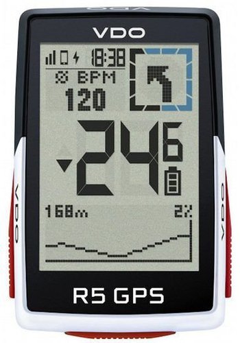 Der R5 GPS von VDO ist ein 2,4-Zoll GPS Fahrradcomputer. Er zeigt alle Informationen, die Einsteiger und Puristen bei einem GPS Fahrradcomputer im Blick haben sollten. Neben den Basisdaten liefert er auch Navigationshinweise und kann mit E-Bikes gekoppelt werden. Alle Informationen sind dank großen Ziffern, starkem Kontrast und Hintergrundbeleuchtung stets gut erkennbar. Ein echtes Highlight ist neben 34 Funktionen die integrierte barometrische Höhenmessung. In Kombination mit der kompatiblen SIGMA RIDE App für dein Smartphone können bis zu 6 individuelle Trainingsansichten in kurzer Zeit erstellt werden. Der VDO R5 GPS wird mit dem Overclamp Butler am Lenker montiert, sodass der Computerkopf mittig oberhalb des Vorbaus auf Höhe des Lenkers positioniert ist. Die Montage von Kabeln und Sensoren ist nicht nötig, somit ist der Fahrradcomputer in kürzester Zeit einsatzbereit. Durch Smart Notifications hast du auch im Sattel die Möglichkeit, über Anrufe und Nachrichten informiert zu werden. Diese erscheinen dann auf deinem Fahrradcomputer-Display. Mit der kostenlosen SIGMA RIDE App werden Trainingsdaten vom Tacho zum Smartphone gesendet und gesammelt. Die wichtigsten Daten und Statistiken lassen sich mit farbigen Datenfeldern übersichtlich und blitzschnell auf dem Smartphone darstellen und bequem auswerten. Erlebnisse und Erfolge können schnell in sozialen Netzwerken wie z.B. Strava, komoot und TrainingPeaks übertragen werden. Spezifikationen: Funktionen:Geschwindigkeitsfunktionen Kilometerfunktionen Zeitfunktionen Höhenmessfunktionen E-Bike-Funktionen Navigationsfunktionen Temperatur individuell einstellbare Sportprofile 6 individuell einstellbare Trainingsansichten Maße: 45 x 74 x 19 mm Gewicht: 54g Akku: 550 mAh, 3,7V Akkulaufzeit von bis zu 25h Textanzeige in 8 Sprachen IPX7 wasserdicht Smart Notifications E-Bike ready 100h Log-Speicher Sensoren: GPS, GLONASS, Barometrische Höhenmessung, Umgebungslichtsensor Passform Butler: 31,8 - 35mm Lenkerdurchmesser R5 GPS inkl. Over Clamp Butler Lenkerhalter, VDO