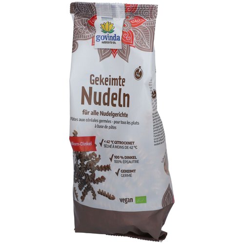 Bitte achten Sie auf eine ausgewogene und abwechslungsreiche Ernährung und eine gesunde Lebensweise. govinda Gekeimte Nudeln Vollkorn-Dinkel Gekeimte Nudeln sind etwas ganz Besonderes. Wieso? Da in ihnen viel mehr Leben steckt als in gewöhnlichen Nudeln. Und da wir ja alle Lebensmittel, die wirklich leben, lieben, passen sie auch perfekt auf deinen Teller. Zutaten: 100 % gekeimter Dinkel (Spelzweizen)* *aus kontrolliert biologischem Anbau Nährwertangaben: Durchschnittliche Nährwerte pro 100 g Energie 1353 kJ / 321 kcal Fett 1,8 g davon gesättigte Fettsäuren 0,4 g Kohlenhydrate 55,0 g davon Zucker 5,0 g Ballaststoffe 21,0 g Eiweiß 10,8 g Salz* 0,03 g *bezieht sich auf natürlich vorkommendes Natrium Ro-Eco-007 Verzehrempfehlung: Zum Kochen (wie herkömmliche Nudeln). Hinweis: Die angegebene empfohlene tägliche Verzehrmenge darf nicht überschritten werden. Aufbewahrung: Kühl (6-25 °C) und lichtgeschützt lagern. Außerhalb der Reichweite von Kindern aufbewahren. Nettofüllmenge: 250 g Herstellerdaten: Govinda Natur GmbH Waldhoferstraße 102 69123 Heidelberg Deutschland