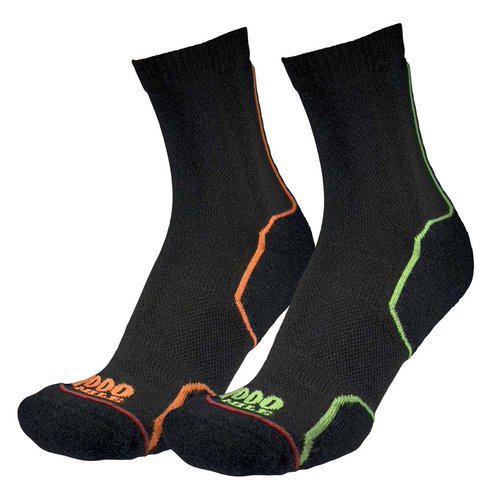 Trailrunning kann eine echte Herausforderung für deine Füße sein, da das Wetter und das Gelände während jedes Laufs variieren können.Daher brauchst du eine Socke, die deine Füße nicht nur bequem hält, sondern sie auch schützt.Wir haben speziell eine Merinowollmischung ausgewählt, die die Socken superweich macht und die Reibung auf der Haut reduziert, ohne sie zu dick zum Laufen zu machen.Merinowollgarn ist bekannt für seine feuchtigkeitsableitenden Eigenschaften und hilft, Schweiß von der Haut abzuleiten, um die Füße kühl und trocken zu halten.Der zusätzliche Vorteil ist, dass es nach dem Waschen auch schneller trocknet.Die natürlichen antibakteriellen Eigenschaften von Merinowolle helfen, die Füße auch bei extremen Distanzen kühl zu halten.Da das Gelände variiert, bietet die Polsterung in unseren Socken den nötigen Komfort und Schutz für deine Zehen und Fußballen.Wir haben die Polsterung sogar bis zur Ferse verlängert, um auch den Bereich der Achillessehne zu schützen, eine bekannte Stelle für viele Läufer! Belüftungszonen auf der Oberseite des Fußes ermöglichen die Luftzirkulation und lassen den Fuß atmen.Dies kann dazu beitragen, dass deine Füße länger kühl bleiben.Die komplett flache Naht verhindert Irritationen der Socken entlang der Zehenoberseite und schützt dich vor möglicher Reibung durch dicke Nähte.