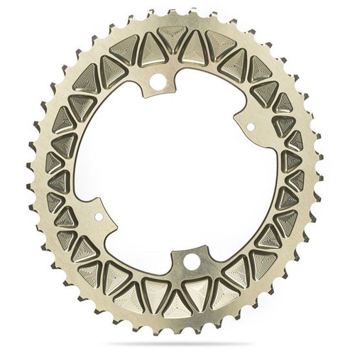 AbsoluteBLACK Premium Shimano 110/4 bcd kompatible ovale Kettenblätter sind nur für neuartige Shimano-Kurbeln Dura Ace 9100, Ultegra 8000 und 105 R7000 konzipiert.Dies sind die besten ovalen Kettenblätter auf dem Markt in Bezug auf Schaltung, Laufruhe und Herstellungsqualität.(Sie können auch an 9000 und 6800 Kurbeln nachgerüstet werden).10/11 / 12spd kompatibel.Größe (Masse + / 1g):34T (31 g), 36T (37 g), 38T (41 g), 39T (42 g), 50T (120 g), 52T (137 g), 53T (139 g).Farbe:Schwarz, Grau, Champagner (Innenring nur in Schwarz).WICHTIG:Rampen an großen Ringen sind speziell für Kombinationen konfiguriert:50/34, 52/36, 52/38, 53 / 39T.Wenn Sie eine andere Konfiguration verwenden möchten, funktioniert dies ebenfalls, aber das Schalten ist langsamer und erfordert möglicherweise mehr Anpassungen des vorderen Dérailleurs, um akzeptabel zu sein.Denken Sie auch daran, dass der Frontdekarilleur nur einen maximalen Unterschied von 16 T zwischen zwei Kettenblättern akzeptieren kann. So haben Shimano und Sram sie entworfen.