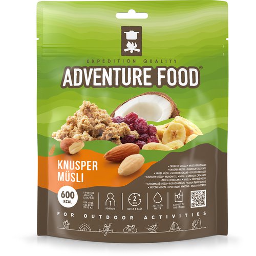 Leckeres Frühstück für unterwegs mit Nüssen, Kokos, Rosinen und Banane
