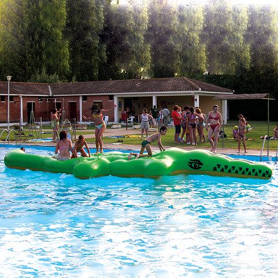 Airkraft Wasserobjekt Krokodil: einfacher und schneller Aufbau - Das Airkraft Wasserobjekt Krokodil bietet bis zu 10 Kindern Platz für spannende Abenteuer. Dank des hochreißfesten Trevira-Gewebes ist das Spielgerät besonders langlebig. Zum Einsatz kommt es in Chlor- oder Salzwasser – auch der UV-Strahlung hält das robuste Material stand. Neben der Möglichkeit zum Spielen, Toben oder Klettern dient der Kopf des luftgefüllten Reptils als Sprungbrett ins Wasser. Der Aufbau des Wasserelements dauert gerade einmal 10 Min. - Sichere Befestigung - Das Airkraft Wasserobjekt Krokodil hat an den Beinen auf jeder Seite jeweils 2 seitliche Abspannungen. Die Abspannung erfolgt wahlweise zur Seite oder, mit allen 4 Ankerpunkten zusammengefasst, auch nach unten hin zum Beckenboden. Inkl. sind jeweils 2x 4 m Seile aus stabilem 8 mm Polyethylen (PE). Sollte Bedarf bestehen, können zusätzlich auch Standard-Seile aus dem Baumarkt verwendet werden. Wichtig: Bitte nicht zu straff abspannen. Jedes Objekt muss leicht pendeln können. Bei zu straffer Abspannung können die Haltegurte abreißen. - Bestell- und Lieferhinweis - Die Lieferung erfolgt wie abgebildet. Andere Farben sind auf Anfrage erhältlich. Lieferbar sind die Farben Rot, Gelb, Grün, Blau, Weiß und Pink.