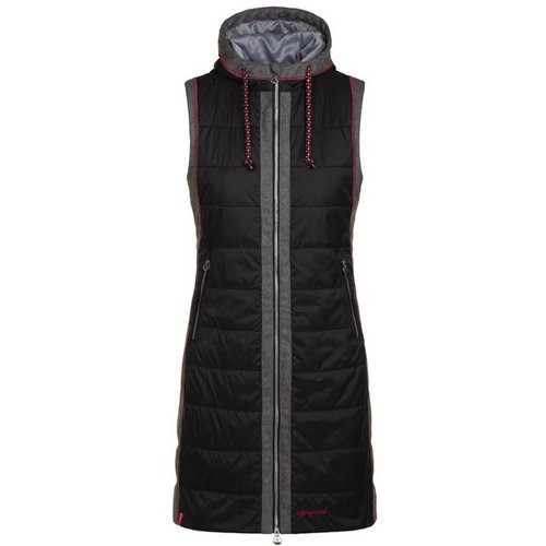 Die lange Weste Himmelberg von Almgwand für Damen ist ein vielseitiger Allrounder in den kühlen Jahreszeiten. Der angenehm leichte und dünn wattierte Steppstoff der Himmelberg von Almgwand, kombiniert mit Loden und Ziernähten in Kontrastfarben, ergänzt jedes sportive Outfit. Die Kapuze lässt sich mit einem Kordelzug in der Weite verstellen. Der 2-Wege-Zipp und die seitlichen Druckknöpfe an der Länge, ermöglichen beinahe uneingeschränkte Bewegungsfreiheit. In den beiden Reißverschluss-Seitentaschen lassen sich Wertsachen ideal aufbewahren. Ob in der Übergangszeit über Pullover oder Sweater getragen oder im Winter als wärmende Zusatzschicht, diese praktische Weste ist ein idealer Begleiter. - Lange elegante Weste - Leichter, dünn wattierter Steppstoff - Loden und Ziernähte in Kontrastfarben - Kapuze mit farbigem Kordelzug - 2-Wege Reißverschluss an der Vorderseite - Seitliche Druckknöpfe an der Länge - 2 Seitliche Reißverschlusstaschen - Gewicht: 400 g - Außenmaterial 1: 100% Polyamid - Außenmaterial 2: 60% Wolle, 30% Polyester, 5% Polyamid, 5% Andere Fasern - Isolation: 100% Polyester - Futter: 100% Polyester - Materialeigenschaft: isoliert / wärmend - Zusammensetzung Isolation: 100% Polyester - Zusammensetzung Außenmaterial: 100% Polyamid - Futter: Polyester - Isolation: Polyester - Außenmaterial: Polyamid
