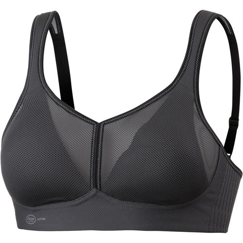Atmungsaktiver Sport-BH aus leichtem, luftdurchlässigem Mesh-Material; doppellagige Cups und nahtlos geformt; ergonomische und verstellbare Träger; seitliche Stützen zwischen den Cups; dreireihiger Verschluss an der Rückseite; starker Halt und schnelltrocknend; Material 49% Polyamid, 39% Polyester, 12% Elastan.