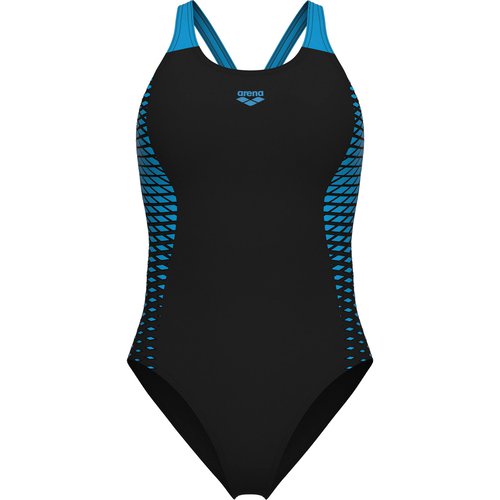Schwimmanzug aus elastischem MaxFit Eco-Gewebe; schnelltrocknend und abriebfest; UPF 50+; runder Halsausschnitt; seitlicher Musterprint; V-förmige, kontrastfarbene Träger mit großem Cut-out am Rücken; mittlere Beinausschnitte; Material 80% Polyamid (recycelt), 20% Elastan.