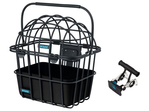 AROUND Vorderrad-Tierkorb "Luna" Abnehmbar, komplett mit Lenkerhalter ACE, Maße (L x B x H): 30 x 38 x 43cm, Aluminium Stabiler, sehr leichter und formschöner Tierkorb, mit Schutzgitter (abnehmbar), leicht zu reinigen, Eigengewicht (inkl. Schutzgitter, Lenkerhalter und Einsatz): 2300 g, Maximale Zuladung: 6 kg