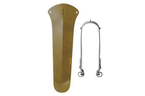 Ass Savers Win Wing Gravel Golden Groove Hinterradschutzblech - Schwarz/Gold bietet hervorragenden Schutz für Ihr Fahrrad im Gelände. Das Schutzblech besteht aus strapazierfähigem Kunststoff und das Trägermaterial ist glasfaserverstärktes Nylon. Die Abmessungen betragen 375 x 85 mm und das Schutzblech ist für Reifenbreiten bis 60 mm geeignet. Es bietet Vollständigen Rückenschutz ab dem Knie.Das Querlenker-Befestigungssystem sorgt für eine einfache Montage, die kein Werkzeug erfordert. Es gibt drei verschiedene Einstellungen, um den Winkel Ihrer Zahnspange auszugleichen. Unterstützt wird das Schutzblech von weichen Gummifüßen. Es ermöglicht ein Nachbiegen im Falle eines Unfalls und ist so konstruiert, dass es nicht hängen bleibt. Die Ritzlinien wurden im Hinblick auf Verriegelungsmechanismen, Selbstzentrierungsfähigkeit, Federbelastung und Materialstärke entwickelt.Mit einem Gewicht von nur 72g ist das Ass Savers Win Wing Gravel Golden Groove Hinterradschutzblech - Schwarz/Gold ein leichtes und langlebiges Accessoire für jeden begeisterten Radfahrer. Holen Sie sich jetzt eins und schützen Sie Ihr Fahrrad vor Schmutz und Beschädigungen im Gelände!