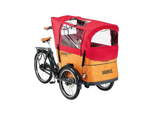 Babboe Regenverdeck• geeignet für folgende Babboe Lastenfahrräder: Curve, Curve-E, Curve Mountain• Material: Docril N (beschichtetes Acrylgewebe)• mit spezieller Fensterfolie für optimale Transparenz• Öffnen/Schließen der Fenster mit YKK-Reißverschlüssen• inkl. Verdeckgestänge