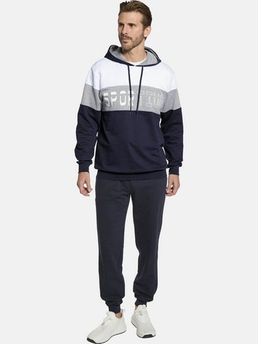 BABISTA begeistert seit 30 Jahren modebewusste Männer mit dem Gespür für Qualität.Der Freizeitanzug ORENZA ist das ultimative Duo für Komfort und Stil. Nicht nur extrem bequem, sondern auch mit einem Hauch von Lässigkeit ausgestattet, eignet er sich perfekt für entspannte Tage, sei es im Sportclub oder zu Hause. Das Oberteil überzeugt mit seinen elastischen Bündchen und erhält durch die Kapuze mit Kordel sowie den sportlichen Print auf der Brust ein stylisches Aussehen. Die dazu passenden Kontraste verleihen dem Ganzen einen lockeren, modischen Touch. Die Hose ist nicht weniger beeindruckend: Sie bietet praktische Eingrifftaschen, einen dehnbaren Bund mit Kordelzug und elastische Bündchen an den Beinen, was einen außergewöhnlichen Tragekomfort sicherstellt. Mit dem Freizeitanzug ORENZA erleben Sie ein Rundum-Wohlgefühl, das von Kopf bis Fuß reicht und Ihnen gleichzeitig einen stilvollen Look garantiert. Material 100% Baumwolle.