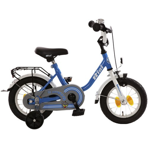 Marke: BACHTENKIRCH • Farbe: blau, weiß • Altersempfehlung: Ab 3 Jahren • Serienname: Bibi • Farbe: blau, weiß • Gewicht: 9 kg • Altersempfehlung: Ab 3 Jahren Technische Daten • Anzahl Gänge: 1 • Bauart Dynamo: ohne Dynamo • Bauart Gabel: Starrgabel • Bauart Lenker: Kinderlenker • Bauart Rahmen: U-Type Rahmen • Bauart Sattelstütze: Kerzensattelstütze • Bauart Vorbau: Standard • Beleuchtung hinten: ohne • Beleuchtung vorne: ohne • Bremssystem hinten: Rücktrittbremse • Bremssystem vorne: Seitenzugbremse • Felge: Aluminium-Felgen • Kettenschutz: Geschlossener Kettenkasten • Nabe hinten: Stahl • Nabe vorne: Stahl • Sattelart: Kunststoffsattel • Schaltungstyp: ohne • Ständer: ohne • Sattel Polsterung: Schaumstoff • Griffe: Sicherheitsgriffe • Art Leuchtmittel Rücklicht: Reflektor • Art Leuchtmittel Frontlicht: Reflektor • Reifen: Ballonreifen Maßangaben • Reifenbreite: 2,25 mm • Zulässiges Gesamtgewicht: 50 kgMaterialangaben • Material Felge: Aluminium • Material Gabel: Stahl • Material Lenker: Stahl • Material Rahmen: Stahl • Material Sattelstütze: Stahl • Material Schutzbleche: Stahl • Material Vorbau: Stahl • Material Ständer: Stahl Funktionen und Ausstattung • Ausstattung gemäß StVO: Nein • Fahrradkorb: Nein • Federung: Nein • Gepäckträger: Ja • Klingel: Ja • Lenkerpolster: Ja • Schutzbleche: Ja • Reflektoren: Speichenreflektor • Stützräder: Ja • Ausstattungsdetails: Reflektoren | Glocke | Vorbaupolster | Rundum geschlossener Kettenkasten | Kantenschutz an Schutzblechen | Abnehmbare Stützräder Hinweise • Aufbau: zu 98% vormontiert Lieferung • Lieferumfang: inkl. abnehmbare Stützräder