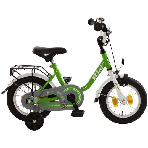Marke: BACHTENKIRCH • Farbe: grün, weiß • Altersempfehlung: Ab 3 Jahren • Serienname: Bibi • Farbe: grün, weiß • Gewicht: 9 kg • Altersempfehlung: Ab 3 Jahren Technische Daten • Anzahl Gänge: 1 • Bauart Dynamo: ohne Dynamo • Bauart Gabel: Starrgabel • Bauart Lenker: Kinderlenker • Bauart Rahmen: U-Type Rahmen • Bauart Sattelstütze: Kerzensattelstütze • Bauart Vorbau: Standard • Beleuchtung hinten: ohne • Beleuchtung vorne: ohne • Bremssystem hinten: Rücktrittbremse • Bremssystem vorne: Seitenzugbremse • Felge: Aluminium-Felgen • Kettenschutz: Geschlossener Kettenkasten • Nabe hinten: Stahl • Nabe vorne: Stahl • Sattelart: Kunststoffsattel • Schaltungstyp: ohne • Speichen: stahl • Ständer: ohne • Sattel Polsterung: Schaumstoff • Griffe: Sicherheitsgriffe • Art Leuchtmittel Rücklicht: Reflektor • Art Leuchtmittel Frontlicht: Reflektor • Reifen: Ballonreifen Maßangaben • Reifenbreite: 2,25 mm • Zulässiges Gesamtgewicht: 50 kgMaterialangaben • Material Felge: Aluminium • Material Gabel: Stahl • Material Lenker: Stahl • Material Rahmen: Stahl • Material Sattelstütze: Stahl • Material Schutzbleche: Stahl • Material Vorbau: Stahl • Material Ständer: Stahl Funktionen und Ausstattung • Ausstattung gemäß StVO: Nein • Fahrradkorb: Nein • Federung: Nein • Gepäckträger: Ja • Klingel: Ja • Lenkerpolster: Ja • Schutzbleche: Ja • Reflektoren: Speichenreflektor, hinten, vorne • Stützräder: Ja • Ausstattungsdetails: Reflektoren | Glocke | Vorbaupolster | Rundum geschlossener Kettenkasten | Kantenschutz an Schutzblechen | Abnehmbare Stützräder Hinweise • Aufbau: zu 98% vormontiert Lieferung • Lieferumfang: inkl. abnehmbare Stützräder