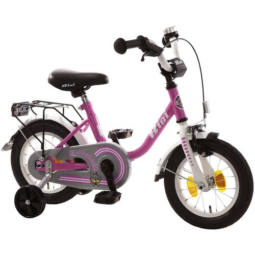 Marke: BACHTENKIRCH • Farbe: weiß, pink • Altersempfehlung: Ab 3 Jahren • Serienname: Bibi • Farbe: pink, weiß • Gewicht: 9 kg • Altersempfehlung: Ab 3 Jahren Technische Daten • Anzahl Gänge: 1 • Bauart Dynamo: ohne Dynamo • Bauart Gabel: Starrgabel • Bauart Lenker: Kinderlenker • Bauart Rahmen: U-Type Rahmen • Bauart Sattelstütze: Kerzensattelstütze • Bauart Vorbau: Standard • Beleuchtung hinten: ohne • Beleuchtung vorne: ohne • Bremssystem hinten: Rücktrittbremse • Bremssystem vorne: Seitenzugbremse • Felge: Aluminium-Felgen • Kettenschutz: Geschlossener Kettenkasten • Nabe hinten: Stahl • Nabe vorne: Stahl • Sattelart: Kunststoffsattel • Schaltungstyp: ohne • Ständer: ohne • Sattel Polsterung: Schaumstoff • Griffe: Sicherheitsgriffe • Art Leuchtmittel Rücklicht: Reflektor • Art Leuchtmittel Frontlicht: Reflektor • Reifen: Ballonreifen Maßangaben • Reifenbreite: 2,25 mm • Zulässiges Gesamtgewicht: 50 kgMaterialangaben • Material Felge: Aluminium • Material Gabel: Stahl • Material Lenker: Stahl • Material Rahmen: Stahl • Material Sattelstütze: Stahl • Material Schutzbleche: Stahl • Material Vorbau: Stahl • Material Ständer: Stahl Funktionen und Ausstattung • Ausstattung gemäß StVO: Nein • Fahrradkorb: Nein • Federung: Nein • Gepäckträger: Ja • Klingel: Ja • Lenkerpolster: Ja • Schutzbleche: Ja • Reflektoren: Speichenreflektor • Stützräder: Ja • Ausstattungsdetails: Reflektoren | Glocke | Vorbaupolster | Rundum geschlossener Kettenkasten | Kantenschutz an Schutzblechen | Abnehmbare Stützräder Hinweise • Aufbau: zu 98% vormontiert Lieferung • Lieferumfang: inkl. abnehmbare Stützräder