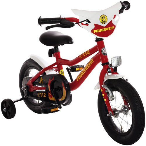Marke: BACHTENKIRCH • Farbe: rot, weiß, neongelb • Serienname: Feuerwehr • Farbe: rot, gelb, weiß Technische Daten • Anzahl Gänge: 1 • Bauart Dynamo: ohne Dynamo • Bauart Gabel: Starrgabel • Bauart Lenker: Kinderlenker • Bauart Rahmen: Kuma-Type Rahmen • Bauart Sattelstütze: Kerzensattelstütze • Bauart Vorbau: Standard • Beleuchtung hinten: ohne • Beleuchtung vorne: ohne • Bremssystem hinten: Rücktrittbremse • Bremssystem vorne: V-Bremse • Felge: Aluminium-Felgen • Kettenschutz: Geschlossener Kettenkasten • Nabe hinten: Stahl • Nabe vorne: Stahl • Sattelart: Kunststoffsattel • Schaltungstyp: ohne • Speichen: stahl • Ständer: ohne • Sattel Polsterung: Schaumstoff • Griffe: Sicherheitsgriffe • Art Leuchtmittel Rücklicht: Reflektor • Art Leuchtmittel Frontlicht: Reflektor • Reifen: Ballonreifen Maßangaben • Reifenbreite: 62 mm • Zulässiges Gesamtgewicht: 50 kgMaterialangaben • Material Felge: Aluminium • Material Gabel: Stahl • Material Lenker: Stahl • Material Rahmen: Stahl • Material Sattelstütze: Stahl • Material Schutzbleche: Kunststoff • Material Vorbau: Stahl • Material Ständer: Stahl Funktionen und Ausstattung • Ausstattung gemäß StVO: Nein • Fahrradkorb: Nein • Federung: Nein • Gepäckträger: Ja • Klingel: Ja • Lenkerpolster: Ja • Schutzbleche: Ja • Reflektoren: hinten, vorne • Stützräder: Ja • Ausstattungsdetails: Reflektoren | Reflektierende Sticker | Glocke | Vorbaupolster | Rundum geschlossener Kettenkasten | Kantenschutz an Schutzblechen | Abnehmbare Stützräder | Cross-Schild Hinweise • Aufbau: zu 98% vormontiert Lieferung • Lieferumfang: inkl. abnehmbare Stützräder