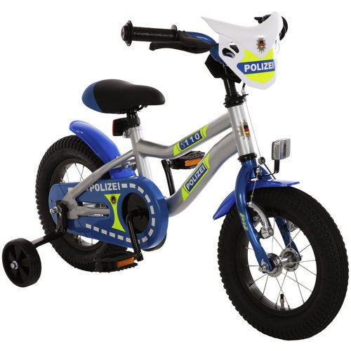 Marke: BACHTENKIRCH • Farbe: blau, silberfarben, neongelb • Altersempfehlung: Ab 4 Jahren • Serienname: Polizei • Farbe: blau, silberfarben • Altersempfehlung: Ab 3 Jahren Technische Daten • Anzahl Gänge: 1 • Bauart Dynamo: ohne Dynamo • Bauart Gabel: Starrgabel • Bauart Lenker: Kinderlenker • Bauart Rahmen: Kuma-Type Rahmen • Bauart Sattelstütze: Kerzensattelstütze • Bauart Vorbau: Standard • Beleuchtung hinten: ohne • Beleuchtung vorne: ohne • Bremssystem hinten: Rücktrittbremse • Bremssystem vorne: V-Bremse • Felge: Aluminium-Felgen • Kettenschutz: Geschlossener Kettenkasten • Nabe hinten: Stahl • Nabe vorne: Stahl • Sattelart: Kunststoffsattel • Schaltungstyp: ohne • Speichen: stahl • Ständer: ohne • Sattel Polsterung: Schaumstoff • Griffe: Sicherheitsgriffe • Art Leuchtmittel Rücklicht: Reflektor • Art Leuchtmittel Frontlicht: Reflektor • Reifen: Cityreifen Maßangaben • Reifenbreite: 47 mm • Zulässiges Gesamtgewicht: 50 kgMaterialangaben • Material Felge: Aluminium • Material Gabel: Stahl • Material Lenker: Stahl • Material Rahmen: Stahl • Material Sattelstütze: Stahl • Material Schutzbleche: Kunststoff • Material Vorbau: Stahl • Material Ständer: Stahl Funktionen und Ausstattung • Ausstattung gemäß StVO: Nein • Fahrradkorb: Nein • Federung: Nein • Gepäckträger: Nein • Klingel: Ja • Lenkerpolster: Ja • Schutzbleche: Ja • Reflektoren: hinten, vorne • Stützräder: Ja • Ausstattungsdetails: Reflektoren | Reflektierende Sticker | Glocke | Vorbaupolster | Rundum geschlossener Kettenkasten | Kantenschutz an Schutzblechen | Abnehmbare Stützräder | Cross-Schild Hinweise • Aufbau: zu 98% vormontiert Lieferung • Lieferumfang: inkl. abnehmbare Stützräder