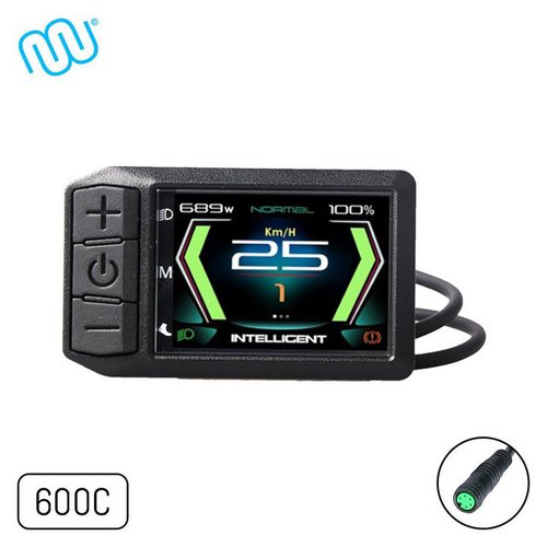 Diese Features werden dich begeistern EigenschaftenSystemspannung: 24V / 36V / 48V / 52VLenkerdurchmesser: 22,2mmBetriebstemperatur: -20°C bis +,70°CBetriebsstrom: 40mA (max. 200mA)Wasserdichtigkeit: IP 65 StandardKommunikationsprotokoll: UARTProduktbeschreibungDas APT-600C Display wird über den grünen 5-Pin Stecker mit dem Controller verbunden. Der Bordcomputer bietet 3, 5 oder 9 einstellbare Unterstützungsstufen sowie eine Geschwindigkeitsanzeige (momentane, durchschnittliche und maximale Geschwindigkeit). Die einstellbare maximale Geschwindigkeit beträgt 10km/h bis 60km/h und 99km/h. Die Akku-Kapazität wird Ihnen in gemessener Spannung und als Batterie gezeigt. Weitere Funktionen sind: Kilometerzähler (Aktuelle Fahrt / Insgesamt / Elektr. Reichweite), Fehlercode-Anzeige, Passwortschutz, Uhrzeit, Schiebe-Modus, Licht An-Aus, und Auto Aus.Hinweis zur KompatibilitätDas Display funktioniert nur mit Bafang BBS-Systemen und Bafang Controllern! Nicht mit windmeile© – und KT-Controllern! Der Lenkerdurchmesser beträgt 22,2mm. LieferumfangAPT 600C - 2,4 Zoll DisplaySchrauben für Transferringe und verschiedene Lenkergrößen