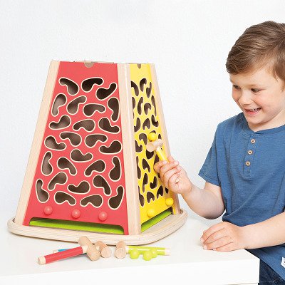 Beleduc Geschicklichkeitsspiel Climb: Der spannende Aufstieg - Wer den Turm beim Geschicklichkeitsspiel Climb bezwingen will, der braucht Konzentration, eine ruhige Hand und Geschick: In die 4 Seiten des Holzturms sind Öffnungen eingefräst. Die Löcher sind praktisch eine Labyrinth-Mauer, an denen Sie die Spielkugel mit dem Kugel-Lifter sicher vorbeiführen müssen. Natürlich darf die Kugel nicht in eines der Löcher fallen. Ziel des Geschicklichkeitsspiels ist es, die 3 Kugeln über eine sichere Passage bis nach ganz oben zu führen. - Beleduc Geschicklichkeitsspiel Climb: Verschiedene Spielvarianten - Das Geschicklichkeitsspiel Climb von Beleduc bietet verschiedene Spielvariationen, wie z. B. ein Kooperationsspiel. - Produktdetails: - Material: Holz - Maße (LxBxH): 41x40x42,5 cm - Gewicht: 2,42 kg - Ab 4 Jahren - Für bis zu 4 Spieler