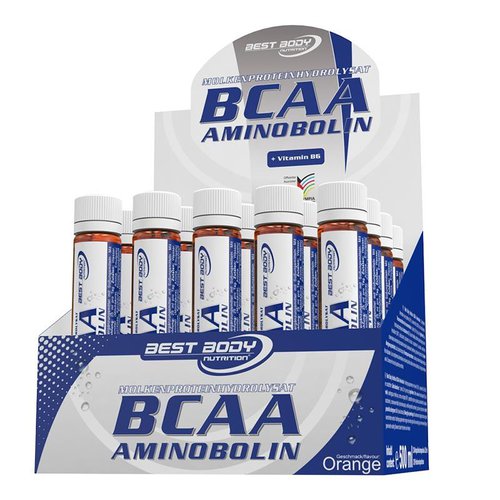 Was ist Best Body Nutrition BCAA Aminobolin? Best Body Nutrition stellt mit BCAA Aminobolin eine praktische und hochwertige Alternative dar, um eine Portion Eiwei? nach dem Training schnell und einfach zu sich nehmen zu k?nnen. Pro Portion sind satte 9,7 g Eiwei? enthalten, wovon 1,9 g BCAAs sind. Das Eiwei? f?r dieses Supplement wird aus dem hochwertigen Molkeneiwei?hydrolysat gewonnen, welches frei von kollagenem Eiwei? ist und dem K?rper bereits kurze Zeit nach der Einnahme zur Verf?gung steht. Bei BCAAs sind die verzweigtkettigen Aminos?uren L-Leucin, L-Isoleucin und L-Valin, die f?r unseren K?rper alle essentiell sind.?D.h., dass der K?rper sie nicht selbst herstellen kann und sie durch die Nahrung zugef?hrt werden m?ssen. Da sie den Muskelaufbau effektiv unterst?tzen, sollten vor allem Sporttreibende auf ein Supplement wie dieses zur?ckgreifen, um die ausreichende Versorgung sicherzustellen. Eiwei? tr?gt?zur Erhaltung? normaler Muskeln und Knochen bei.?Auch hat Best Body Nutrition die BCAA Aminobolin Ampullen mit Vitamin B6 angereichert. Dieses Vitamin unterst?tz,t neben dem Eiwei?stoffwechsel und dem Immunsystems, auch einen normalen Energiestoffwechsel. Die wichtigsten Fakten im ?berblick Hochwertiges Molkeneiwei?-Hydrolysat Ohne kollagenes Eiwei? 9,7 g Eiwei? und 1,9 g BCAAs?f?r den Muskelaufbau Mit Vitamin B6 Einfach Einnahme Praktische Handhabung F?r wen ist BCAA Aminobolin empfehlenswert? Die Best Body Nutrition BCAA Aminobolin Ampullen eignen sich ideal f?r alle Sporttreibenden, die auf der Suche nach einer praktischen und schnellen Einnahmem?glichkeit ihrer t?glichen Eiwei?portion sind. Du bist viel unterwegs, ein Outdoor-Aktivist oder m?chtest deine Zeit nicht mit dem umst?ndlichen mixen von Shakes vertr?deln? Dann ist dieses Produkt deine Wahl!