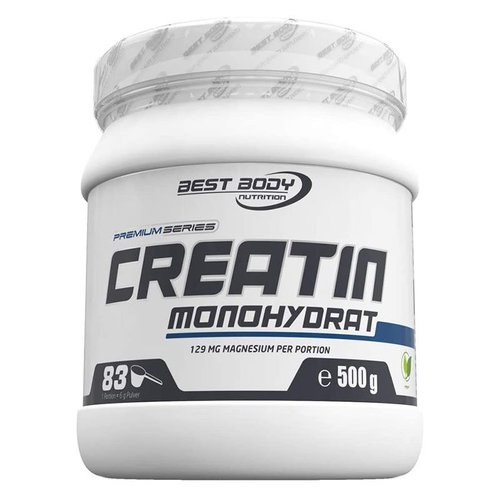 Was ist Best Body Nutrition Creatin Monohydrat? Das Creatin Monohydrat Pulver von Best Body Nutrition versorgt den K?rper mit 5,8 g Creatin Monohydrat pro Portion und kann dabei helfen die k?rperliche Leistung zu verbessern. Bei Creatin handelt es sich? um eine k?rpereigene Substanz, welche bei einer zus?tzlichen Einnahme von mindestens 3 g pro Tag nachweislich die k?rperliche Leistung w?hrend kurzer, hochintensiver, wiederholter Trainingseinheiten, wie zum Beispiel im Schnellkrafttraining, steigern kann. Creatin kann von unserem K?rper selbst hergestellt werden, andererseits steckt? rotem Fleisch. Meistens reicht die Menge, welche der K?rper synthetisiert hat nicht aus und wer hat?schon Zeit immer ein ganzes Steak? essen. Und was ist mit denen, die wenig Fleisch essen m?chten? ?Durch die Einnahme von Best Body Nutrition Creatin Monohydrat wird ein Leistungsabbau verhindert und eine Leistungssteigerung unterst?tzt. Creatin wird n?mlich nach der Einnahme zu etwa zwei Drittel zu Creatinphosphat umgewandelt und wird so im Muskel gespeichert. Creatinphosphat erh?ht den Gehalt an Adenosintriphosphat (ATP). ATP ist der Treibstoff f?r unsere Muskeln. Je h?her der ATP-Spiegel im Muskel ist, desto l?nger kann eine Leistung im Maximalbereich aufrechterhalten werden. ATP wird durch Spaltung schnell verbraucht, aber in der Erholungsphase innerhalb k?rzester Zeit (mehrere Sekunden bis wenige Minuten) im Zusammenspiel mit Creatinphosphat wiederhergestellt. Um Muskelkr?mpfe nach intensiven Trainingseinheiten vorzubegen hat Best Body Nutrition das Pulver ebenfalls mit Magnesium angereichert. Dieser essentielle Mineralstoff unterst?tzt eine normale Muskelfunktion und tr?gt zu einem normalen Elektrolytgleichgewicht im K?rper bei. Die wichtigsten Fakten im ?berblick Hochwertiges Creatin Supplement in Pulverform 5,8 g Creatin Monohydrat pro Portion Erm?glicht eine Steigerung der k?rperlichen Leistung bei einer regelm??igen Einnahme von 3 g Creatin Angereichert mit Magnesium, um Muskelkr?mpfen vorzubeugen F?r wen sind die Creatin Kapseln empfehlenswert? Das Best Body Nutrition Creatin Monohydrat Pulver ist besonders f?r alle Sporttreibenden empfehlenswert, die w?hrend des Trainings schnell mit einem Leistungsabbau zu k?mpfen haben. Zus?tzliches Creatin f?llt die leeren Speicher in den Muskeln wieder auf, sodass es bei einer t?glichen Einnahme von mindestens 3 g Creatin t?glich nachweislich auch zu einer Leistungssteigerung kommen kann.