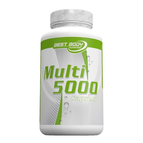 Was ist Best Body Nutrition Multi 5000? Bei den Multi 5000 Kapseln handelt es sich um ein hochwertiges, hochdosiertes Vitamin-Pr?parat der Marke Best Body Nutrition. Eine Kapsel deckt bereits 100 % des t?glichen Bedarfs an Vitamin B1, B2, B6, B12, C, E, Niacin, Fols?ure und Biotin ab. Eine?Portion?(3 Kapseln) reichen da vollkommen aus, wenn durch k?rperliche Aktivit?ten mehr Vitamine ausgeschieden werden. Vitamine sind essentielle N?hrstoffe,?d.h., unser K?rper kann sie selbst nicht herstellen?und ist?auf die Zuf?hrung durch die Nahrung oder ein Supplemente angewiesen. Vitamin B1, B2, B6, B12, C, Niacin und Biotin tragen zu einem normalen Energiestoffwechsel bei. Ein gut funktionierender Energiestoffwechsel ist wichtig f?r die Energiegewinnung, die wiederum f?r die Aufrechterhaltung der Grundfunktionen?des K?rpers.?Vitamin B6, B12, C und Fols?ure tragen zu einer normalen Funktion des Immunsystems bei. Au?erdem leisten die Vitamine B2, B6, B12, C Niacin und Fols?ure einen Beitrag zur Verringerung von M?digkeit und Erm?dung. Fitness- und Ausdauersport f?hrt leider auch zu einer gesteigerten Bildung freier Radikale, welche Zellsch?den verursachen k?nnen. Vitamin B2, C und E sch?tzen die Zellen vor oxidativem Stress und Zellsch?den. Die wichtigsten Fakten im ?berblick Hochdosiertes Vitamin-Pr?parat 1?Kapsel deckt? 100 % des Tagesbedarfs Reduziert?M?digkeit und Ersch?pfung Verringert oxidativen Zellstress F?r wen ist Multi 5000 empfehlenswert? Die Best Body Nutrition Multi 5000 sind f?r alle?Meschen geeignet, die ihre Gesundheit durch ein hochwertiges Vitamin-Supplement unterst?tzen m?chten. Die Einnahme empfiehlt sich?auch f?r alle Sporttreibenden, da sie durch die h?ufigen k?rperlichen Bet?tigungen mehr N?hrstoffe durch den Schwei?verlieren und darum einen h?heren Bedarf haben. Dieses Produkt deckt den besonders hohen Bedarf.
