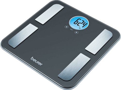 Beurer 748.16 BF 195 Personenwaage Die Beurer BF 195 Diagnosewaage mit Elektroden aus gebürstetem Edelstahl wirkt sehr edel und wird zum Blickfang in deinem Badezimmer. Mit der Waage misst du einfach und schnell dein Gewicht, Körpergewicht, -fett, -wasser, Muskelanteil, Knochenmasse und Kalorienbedarf. So wird eine einfache und verständliche Gewichtskontrolle möglich. Fünf wählbaren Aktivitätsgrade passen dabei die Berechnung der Körperwerte individuell an deinen Lebensstil an.