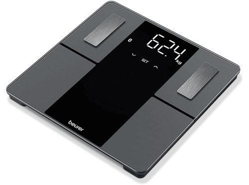 Elegante Waage mit smarter Bluetooth®-Funktion Mit der Beurer BF 500 Diagnosewaage behältst du deine Körperwerte jederzeit im Blick – auch unterwegs. Dank Bluetooth®-Übertragung werden die Messdaten automatisch an die „beurer HealthManager Pro“-App gesendet und dort übersichtlich grafisch dargestellt. Das extragroße Display bleibt unsichtbar, bis die Messung startet, und fügt sich in das moderne schwarze Design ein. Diese stilvolle Waage ist nicht nur funktional, sondern auch ein echter Hingucker in deinem Badezimmer.