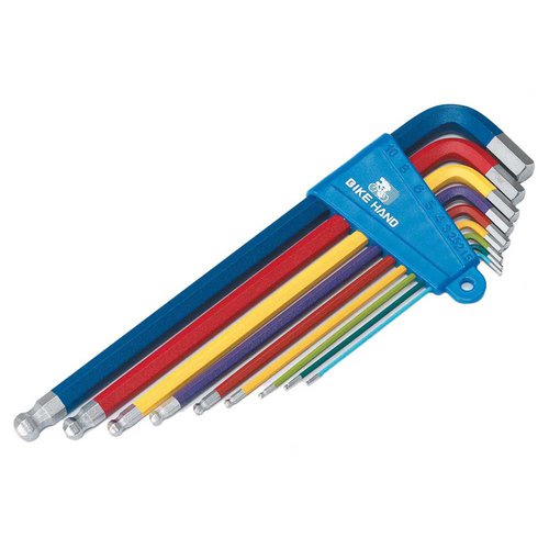 Rüsten Sie sich mit dem unverzichtbaren BIKE HAND Inbusschlüssel-Satz aus, einer umfassenden 9-teiligen Kollektion, die für jeden Radfahrer konzipiert ist, vom Gelegenheitsfahrer am Wochenende bis zum erfahrenen Profi. Dieser vielseitige Satz umfasst alle gängigen Inbusschlüsselgrößen, die Sie für Reparaturen unterwegs, routinemäßige Wartungsarbeiten und sogar komplette Fahrradüberholungen benötigen. Lassen Sie sich nicht auf dem Trail im Stich oder mit einer losen Komponente zurück – der BIKE HAND Inbusschlüssel-Satz sorgt dafür, dass Sie immer auf jedes mechanische Problem vorbereitet sind.Dies ist nicht nur ein weiterer Inbusschlüssel-Satz, es ist ein sorgfältig gefertigtes Werkzeug, das auf Präzision, Langlebigkeit und Benutzerfreundlichkeit ausgelegt ist. Die Schlüssel sind aus hochwertigem, wärmebehandeltem Stahl geschmiedet, was eine außergewöhnliche Festigkeit und Widerstandsfähigkeit gegen Abrunden oder Abstreifen gewährleistet, selbst unter hoher Belastung. Diese robuste Konstruktion garantiert eine lange Lebensdauer und bietet zuverlässige Leistung Fahrt für Fahrt, Jahr für Jahr. Verabschieden Sie sich von dünnen Inbusschlüsseln, die sich verbiegen oder unter Druck brechen – der BIKE HAND Inbusschlüssel-Satz ist für die Beanspruchung durch regelmäßigen Gebrauch ausgelegt.Die ergonomischen, angefasten Enden der Inbusschlüssel sorgen für einen sicheren und festen Sitz in den Innensechskant-Aufnahmen, verhindern ein Verrutschen und minimieren das Risiko, Ihre Fahrradkomponenten zu beschädigen. Diese präzise Passform ermöglicht eine optimale Drehmomentübertragung, wodurch das Einstellen und Anziehen von Schrauben zum Kinderspiel wird. Die lange Ausführung der Schlüssel bietet eine erhöhte Hebelwirkung, sodass Sie die notwendige Kraft aufbringen können, ohne Ihre Hände oder Handgelenke zu belasten. Selbst hartnäckige, zu fest angezogene Schrauben sind kein Problem für den BIKE HAND Inbusschlüssel-Satz.Dieser umfassende 9-teilige Satz enthält alle wichtigen Inbusschlüsselgrößen für die meisten Fahrradreparaturen und -einstellungen: 1.5 mm, 2 mm, 2.5 mm, 3 mm, 4 mm, 5 mm, 6 mm, 8 mm und 10 mm. Diese große Auswahl an Größen deckt alles ab, vom Einstellen von Bremshebeln und Umwerfern bis zum Anziehen von Vorbau- und Kurbelschrauben. Egal, ob Sie eine schnelle Kontrolle vor der Fahrt oder eine komplette Überholung des Antriebsstrangs durchführen, dieser Satz ist für Sie da.Der BIKE HAND Inbusschlüssel-Satz ist auch unglaublich praktisch. Die Schlüssel sind an einem praktischen Schlüsselring organisiert, wodurch sie ordentlich zusammen gehalten und ein Verlust verhindert wird. Durch dieses kompakte Design lässt sich der Satz einfach in Ihrer Satteltasche, Werkzeugkiste oder Werkstatt verstauen. Schluss mit dem Herumkramen in Schubladen oder der Suche nach der richtigen Größe – alles, was Sie brauchen, ist leicht zugänglich.Investieren Sie in den BIKE HAND Inbusschlüssel-Satz und erleben Sie den Unterschied, den hochwertige Werkzeuge machen können. Dieses Set ist mehr als nur eine Sammlung von Inbusschlüsseln, es ist eine Investition in die Leistung und Langlebigkeit Ihres Fahrrads. Mit seiner robusten Konstruktion, der präzisen Passform und dem umfassenden Größenbereich ist dieses Set eine unverzichtbare Ergänzung für jedes Fahrradwerkzeug. Gehen Sie keine Kompromisse bei der Qualität ein, wenn es um die Wartung Ihres Fahrrads geht – entscheiden Sie sich für den BIKE HAND Inbusschlüssel-Satz für zuverlässige Leistung und Sicherheit bei jeder Fahrt.Hören Sie auf, mit unzureichenden Werkzeugen zu kämpfen, und rüsten Sie auf den BIKE HAND Inbusschlüssel-Satz um. Erleben Sie den reibungslosen Betrieb, die sichere Passform und die erhöhte Hebelwirkung, die diese hochwertigen Inbusschlüssel bieten. Egal, ob Sie ein erfahrener Mechaniker oder ein Anfänger sind, dieser Satz ist ein unschätzbares Hilfsmittel für die Wartung und Reparatur Ihres Fahrrads. Halten Sie Ihr Fahrrad in einwandfreiem Zustand und genießen Sie unzählige Kilometer problemlosen Fahrens mit dem BIKE HAND Inbusschlüssel-Satz. Es ist die perfekte Kombination aus Qualität, Funktionalität und Wert. Warten Sie nicht, bis Sie auf dem Trail liegen bleiben – seien Sie mit dem BIKE HAND Inbusschlüssel-Satz auf alles vorbereitet.