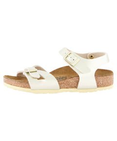 Die Rio Kids Sandalen von Birkenstock kommen mit einem anatomisch geformten Fußbett und machen mit dem metallisch glänzenden Obermaterial einen super modischen Eindruck.