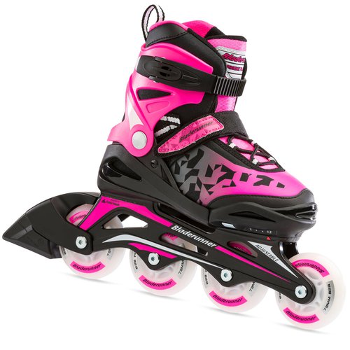 Kinder-Inliner - Bladerunner by Rollerblade Phoenix Flash Girl Produktdetails Kinder-Inliner mit LED-Rollen für beste Sichtbarkeit 4 Rollen Rollendurchmesser: 72 mm Rollenhärte: 82A Kugellager: ABEC 3 per Knopfdruck größenverstellbar - wächst mit den Kinderfüßen mit Markierungen im Zehenbereich zum Feststellen der korrekten Größe gepolsterter Innenschuh mit Mesh für Atmungsaktivität gepolsterte Zunge stabile und leichte Kunststoff-Schale luftiges, perforiertes Obermaterial, verstärkter Zehenbereich Schnürung mit Rundsenkeln über textile Ösen Klettverschluss über dem Spann feinjustierbare Kunststoff-Ratsche über der Zunge maximales Benutzergewicht: 60 kg Kompositschiene montierte Bremse Anzieh-/Trageschlaufe Rollendurchmesser Kleinere Rollen sind einfacher zu beherrschen, größere Rollen eignen sich für schnellere Fahrten von fortgeschritteneren Skatern Anfänger sollten Rollen bis 80 mm wählen, Fortgeschrittene bis 84 mm und Profis ab 90 mm Die Rollen der Bladerunner Phoenix haben einen Durchmesser von 72 mm und eignen sich gut für Kinder Rollenhärte Je größer die Zahl vor dem A", desto härter sind die Rollen Die Skala reicht üblicherweise von 75A bis 90A, wobei 90A eher harte Rollen sind Weiche Rollen absorbieren Erschütterungen auf unebenem Boden besser, weisen jedoch eine niedrigere Endgeschwindigkeit auf Harte Rollen eignen sich für glatten Boden und schnelleres Fahren, besitzen jedoch weniger Grip Die Rollenhärte der Bladerunner Phoenix ist 82A. Damit fahren sie sich eher hart und sind recht widerstandsfähig gegen Abnutzung Kugellager Es gibt die Klassen 3, 5, 7, 9 und 11 - je höher die Klasse, desto höher die Genauigkeit des Lagers Preiswerte Skates und Kinder-Skates haben ABEC 3; meistgenutzt sind ABEC 5 und ABEC 7; ABEC 9 und ABEC 11 eignen sich für sportliche, schnelle Fahrer mit hohen Ambitionen Die Bladerunner Phoenix haben ABEC 3-Kugellager und sind in Kombination mit der Rollengröße perfekt für Kinder geeignet "