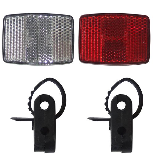 Ein absolutes Muss für bessere Sichtbarkeit. Reflektoren entsprechen den Bestimmungen der StVZO. Achtung: Der Rückreflektor ersetzt nicht den Großflächen Z-Reflektor. Flexibel verstellbare Halterungen (16 - 35 mm)|Weißer Frontreflektor. roter Rückreflektor entsprechend der StVZO