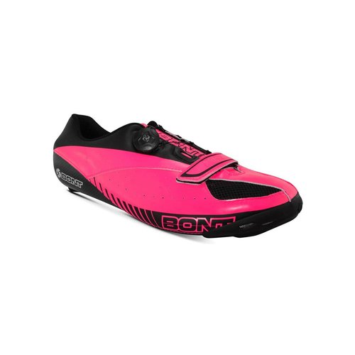 Bont Blitz Rennradschuhe Pink Schwarz Die Bont Blitz Rennradschuhe sind High-End-Schuhe, die sich perfekt an den Fuß des Radfahrers anpassen. Dank des duroplastischen Harzes haben sie eine vollständig anpassbare Passform mit thermoformbarer Innensohle und Chassis. - Gewicht: 235 g (pro Schuh in Größe 42) - Höhe: 3,6 mm