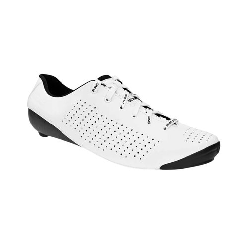 Bont Vaypor Lace: Präzision und Leichtigkeit für die Straße Die Bont Vaypor Lace sind Rennradschuhe, die für die anspruchsvollsten Radfahrer entwickelt wurden. Mit einem ultraleichten Obermaterial, Schnürverschluss und einer thermoformbaren Carbonsohle bieten sie eine ideale Kombination aus Passform, Steifigkeit und Belüftung für hochkarätige Wettbewerbe. Oberflächenart: Asphalt Pedaltyp: Look (3 Schrauben) Verwendung: Wettbewerb Gewicht: 180 g (Größe 42) Material des Obermaterials: Japanisches Durolite Belüftung: Perforierte Bereiche mit vorderen und hinteren Belüftungen Kompatibilität: 3-Loch-Rennradplatten