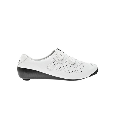 Bont Vaypor SL Schuhe Weiß Schwarz Die Bont Vaypor SL sind die ultimativen Radschuhe für anspruchsvolle Läufer. Mit einem ultraleichten Design und einer präzisen Passform sind diese Schuhe mit fortschrittlicher Technologie hergestellt, um die beste Energieübertragung und den besten Komfort zu bieten, alles in einem Hochleistungspaket. Untergrund: Straße Verwendung: Wettbewerb Gewicht: 200 Gramm (Größe 42) Verschlusssystem: BOA® Li2 Sohle: unidirektionale Toray-Kohlefaser aus Japan Belüftung: Ultraleichtes Durolite-Obermaterial mit Anti-Stretch-Mesh für eine kühle, bequeme Passform.