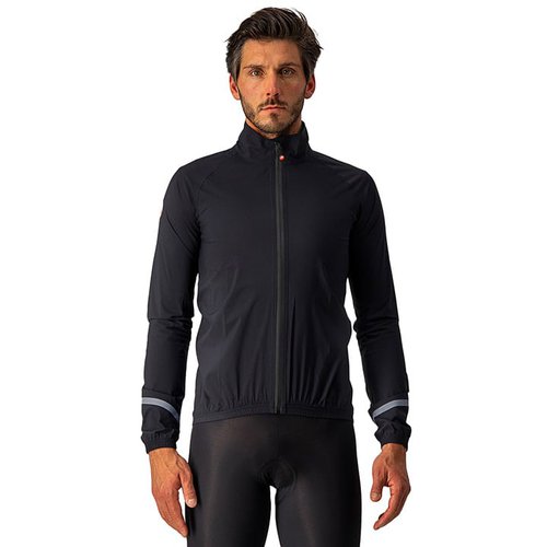 Die Regenjacke für Notfälle! Perfekte Jacke für Schauerwetter. Sie ist absolut wasserdicht, sehr leicht und benötigt nur den Platz einer halben Trikottasche. Die Passform ist etwas legerer, so dass sie sogar über ein Light Jacket angezogen werden kann. aus wind- und wasserdichtem 2,5 Lagen Deluge Light Material (Wassersäule 10.000 mm). komplett versiegelte Nähte mit Netz unterlegte Ventilationszone im Schulterbereich gefütterter, hoher Stehkragen wasserdichter, durchgehender Front-RV extrem kleines Packmaß für die Rückentasche elastische Bund- und Ärmelabschlüsse integrierter Packbeutel radsportspezifische, etwas legerere Passform reflektierende DesignelementeMaterial: 100% Polyamid