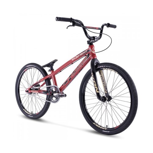 Chase repousse les limites depuis 11 ans avec ses vélos complets et la dernière édition de l'Element, Element 10, est la meilleure version jamais proposée.CADRE : Chase Element Pro Cruiser 22" Tube supérieur, alliage 7005 T6 hydroformé, tige de tube de selle système Aero, pattes arrière fermées, système de tendeur de chaîne intégréFOURCHE : Ikon Carbon Pro 1-1/8", pattes arrière 20 mm, tube de direction en alliage, pattes arrière et capuchon supérieurPOTENCE : Chase Element 31,8 mm 50 mmGUIDON : Chase Element 31,8 mm 5,75"PLATEAU : Insight 41T 4 boulons BCD 104 mmPÉDALIER : Excess LSP 180 mm, Press Fit BB86MOYEUX : Chase Element 3/8" boulons, 36H avant, Chase Element 3/8" cassette ISO moyeu 36H, 3 cliquets Triple Angle Engagement 24T cliquets arrière, pignon 18TJANTES : Sun Ringlé Envy Rims 24×1,75", 36H, sans frein SurfacePNEUS : Tioga Fastr X 24×1,75" avant et arrièreFREINS : Levier et étrier hydrauliques Tektro (plaquettes en résine), disque de frein de 120 mm, adaptateur de disque....