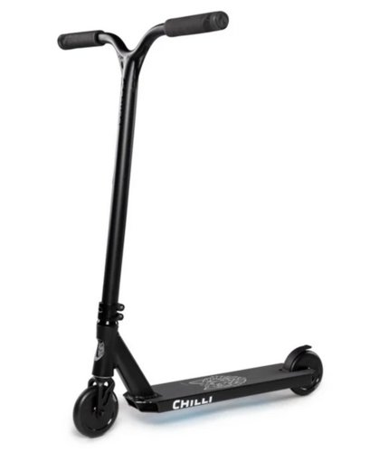 Produktinformationen "Chilli Archie Cole black" Unsere Pro Rider Archie Cole hat seinen persönlichen Signature Scooter basierend auf der Geometrie das beliebten Allround Einsteigermodells, dem Chilli Reaper, entwickelt. Die gezielten Änderungen an der Headtube, die mit einem Ausschnitt versehen wurde, die neue Fork, die schmale 2-Bolt M8 Clamp und die superleichte T-Bar aus Aluminium heben diesen Scooter auf ein neues Level. Das einzigartige Design auf der Unterseite des Decks erinnert an Archies Heimatort, wo seine Stunt Scooter Karriere begann.Die Entwickling und Testphase dauerte mehr als 15 Monate. Das Resultat: Archie Cole's persönliches Lieblings-Set Up, natürlich mit Pro Spider HIC Kompressionssystem. Extrem langlebig, aber dennoch leicht genug die Champions. Level: Pro max. Belastung: 100kg Deck: AL6061-T6 Deck Breite: 11,5cm Deck Länge: 50cm T-Bar: AL6061-T6 T-Bar Breite: 58cm T-Bar Länge: 61 cm Gabel: AL6061-T6 Clamp: 2-Bolt Aluminium Rollen: 110mm Bremse: Flex Brake Topmounted Kompression: Chilli Spider HIC Höhe Scooter: 86,5 cm Gewicht: 3,44 kg Farbe: black