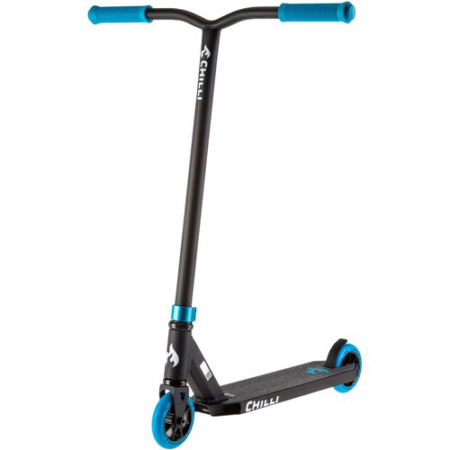 Zweifarbiger, stabiler Stuntscooter für Beginner; Aluminium Deck, Maße (H/B): ca. 50 x 11,5 cm; Chromstahl Lenkstange, Maße (H/B): ca. 58 x 58 cm; klassische Stahlgabel mit Universal HIC; Gummigriffe mit geriffelter Oberfläche für besseren Halt; Bremse: Flex Brake Topmounted; Rollen: ca. 11 cm Durchmesser, mit 8 Speichen; Max. Belastung: ca. 100 kg; Gesamtlänge: ca. 69 cm; Gesamthöhe: ca. 79 cm; Gewicht: ca. 3,5 kg.