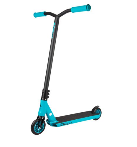 Ein super Allround-Einsteiger Stunt Scooter mit unschlagbarem Preis- /Leistungsverhältnis für Anfänger und Fortgeschrittene. Der Reaper ist enorm robust und dabei trotzdem noch leicht genug um alle erdenklichen Tricks damit zu machen. Im Austausch einer erweiterten Brake, kann der Reaper auch mit 120mm Wheels gefahren werden. Um es für dich noch bequemer zu machen, kommt der Reaper vormontiert. Du musst lediglich die Bar noch auf das Deck schrauben. Die Gesamthöhe beträgt in fertig aufgebautem Zustand 84cm. Den Reaper gibt es auch noch in weiteren Farben oder stelle ihn dir individuell mit unseren Parts zusammen und mach ihn zu deinem individuellen Reaper. Tipp für den Kauf: Die Bar sollte nicht deutlich über Bauchnabelhöhe gehen, wenn man auf dem Scooter steht. Level: Anfänger und Fortgeschrittene max. Belastung: 100kg Deck: 6061 Aluminium Deck Breite: 11,5cm Deck Länge: 50cm T-Bar: Stahl T-Bar Breite: 58cm T-Bar Länge: 58cm Gabel: 7003 Slim Cut Aluminium Clamp: 3-Bolt Aluminium Rollen: 110mm Bremse: Flex Brake Topmounted Kompression: Chilli Spider HIC Höhe Scooter: ca. 84cm Gewicht: 3,8kg Farbe: Blue