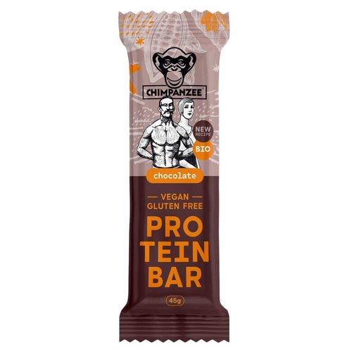 CHIMPANZEE Proteinriegel Schokolade 45g je Riegel 20 Stück pro Verpackungseinheit.Eigenschaften:- Chimpanzee BioProtein Riegel sind geeignet für Veganer und Vegetarier, die einen höheren Bedarf an hochwertigem Protein in ihrer Ernährung haben.- Er ist auch ideal für Sportler, die das Beste aus ihrem Training herausholen wollen.- Er unterstützt den Stoffwechsel, der für die Regeneration und das Wachstum der Muskelmasse unerlässlich ist, und enthält Kohlenhydrate als Quelle für dauerhafte Energie.- BIO Protein Schokoriegel.- Vegan.- Glutenfrei.- Ohne Gentechnik.- Ohne Konservierungsstoffe.Allergiehinweise: Das Produkt kann Spuren von anderen Nüssen und Sesam enthalten.Zutaten:- Datteln*, Cashewkerne*, Reisprotein* 7,5 %, Kakaobohnen* 7%, Kakao* 5,5 %.(*zertifiziertes BIO-Produkt).Bitte finden Sie die detaillierte Übersicht unter folgendem Link.