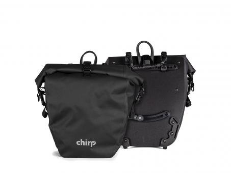 Das aus 2 wasserdichten Fahrradtaschen bestehende H2O II Hecktaschen-Set von Chirp Bike-Parts, kombiniert eine hohe Funktionalität mit einem top Preis-/Leistungsverhältnis., umweltfreundliches, PVC-freies Material, Taschenset bestehend aus 2 Gepäckträgertaschen zur seitlichen Befestigung, reflektierende Elemente, kleine Innentasche mit Reißverschluss, Details, Maße: ca. 40 x 32 x 16 cm, Gesamt-Volumen: ca. 42 Liter, inklusive 2 praktischen Schultergurten mit Schnellverschlüssen, Die robusten H20 II Gepäckträgertaschen von Chirp Bike-Parts bieten preisgünstiges Backpacking und sind ideal im täglichen Pendler-Einsatz., Befestigungs- und Führungshaken werkzeugfrei einstellbar, passend für alle gängigen Fahrrad-Gepäckträger, Multifunktionsschließung, Beide Radtaschen sind einfach und werkzeugfrei an allen gängigen Gepäckträgern zu montieren und fassen ein Gesamtvolumen von 42 Litern., flexible Trageschlaufen, 100% wasserdicht